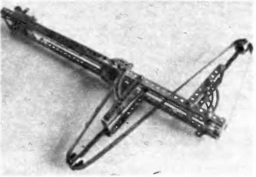 Возьмите стальную линейку и сожмите ее с обоих концов. Ее прогиб можно использовать для перемещения толкателя. Вот и готова схема простого механизма преобразования движения (а. с. № 693 082). Пластина из упругой стали крепится шарнирно в стойке и в ползуне (рис. 1).