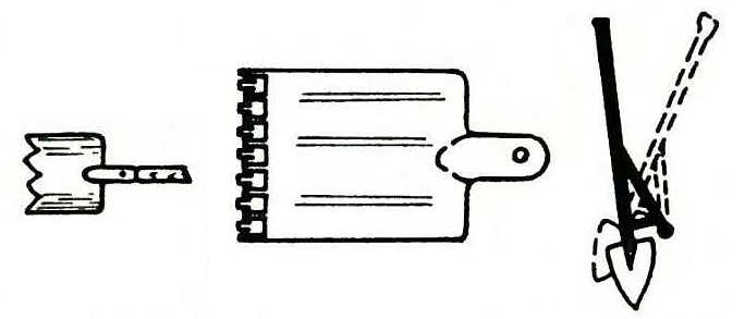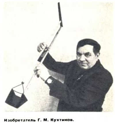 А вот еще необычная лопата. Изготовлена и опробована Г. Кухтиковым из Подмосковья. Нужна яма, скажем, 20х20х300 см, и не шире. Хочешь не хочешь, раскапывай котлован и будь любезен перебросать лишний куб-другой земли. Иначе — как развернешься? Работы дня на два.