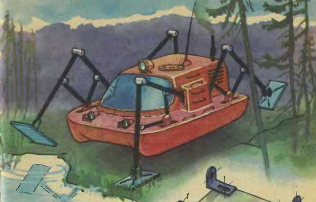 Вы можете назвать ее оленеходом, верблюдоходом или механическим конем — все будет правильно, потому что в основе действия ее ног лежит тот же принцип, что и у животных, — рычажная система с суставами. Именно поэтому опоры ноги одной из первых действующих моделей шагающей машины состояли из двух частей: верхней и нижней, шарнирно соединенных между собой. Сверху ноги крепились к общей несущей раме, а еще выше — к параллелограммам тяг с шарнирами по углам.