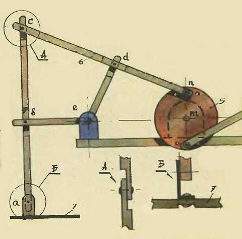 Вся система представляла собой, по сути депа, кривошипно-шатунный механизм, весьма напоминающий «переступающую машину» нашего русского ученого П.Л.Чебышева, построенную еще в конце прошлого века.