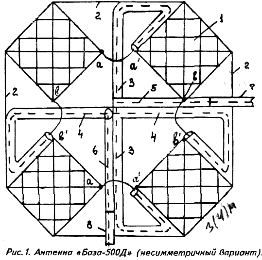 Антенна База-500Д* является слабонаправленной и предназначена для обеспечения ближней радиосвязи в диапазоне 2-10 МГц. Она представляет собой излучатель (см. Военный вестник•. 1993. + 9.). На рис.1 представлен несимметричный вариант ее исполнения.